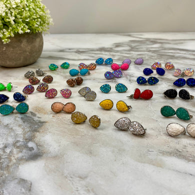 Druzy Stud Earrings - Mermaid 8mm - Black