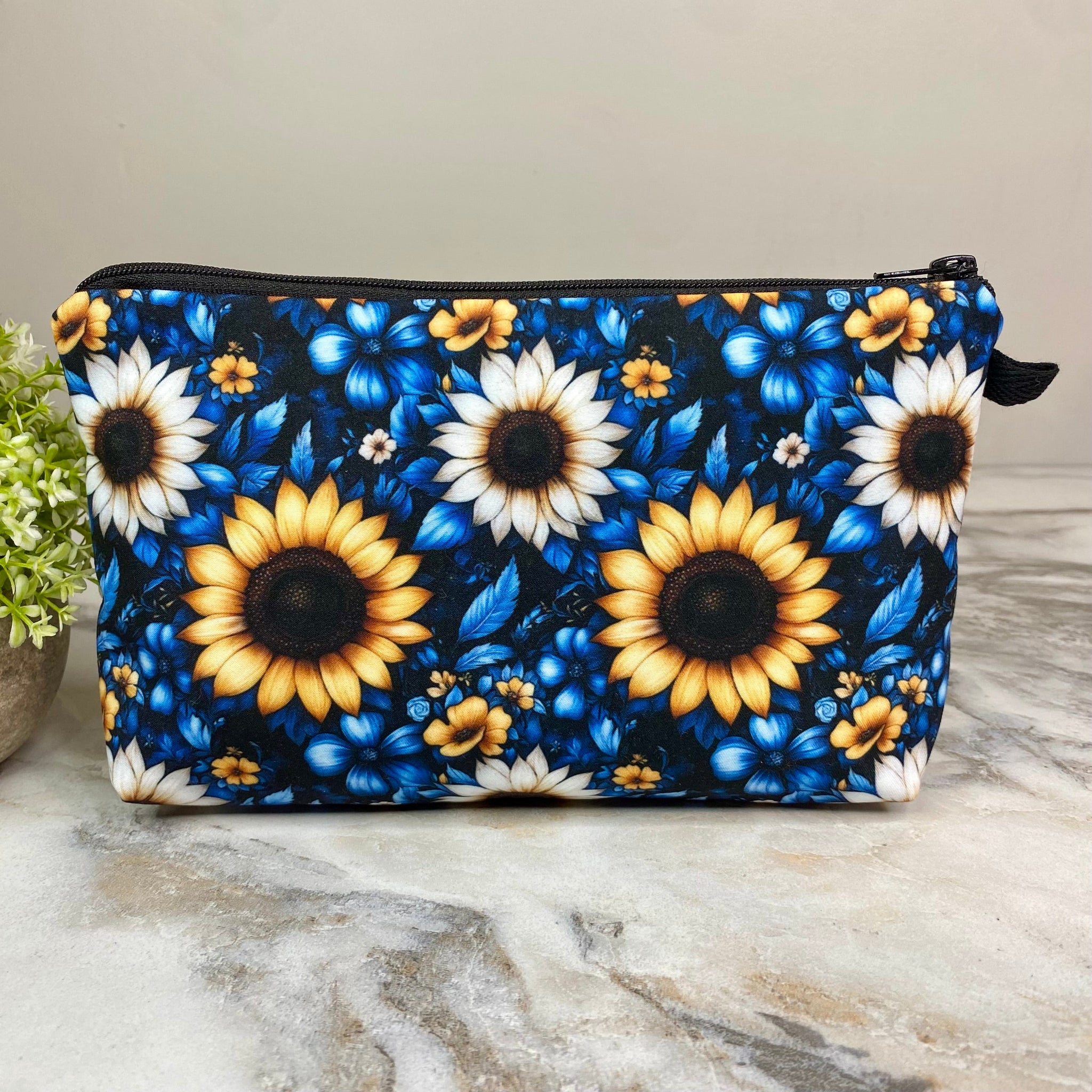 Pouch - Floral, Blue Yellow White Sunflower