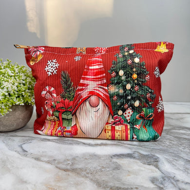 Corduroy Zip Pouch - Christmas Gnome Tree