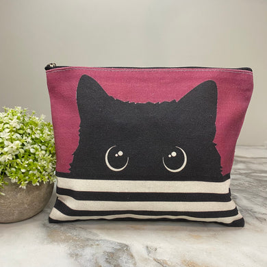 Canvas Pouch - Black Cat Peekaboo Dark Pink