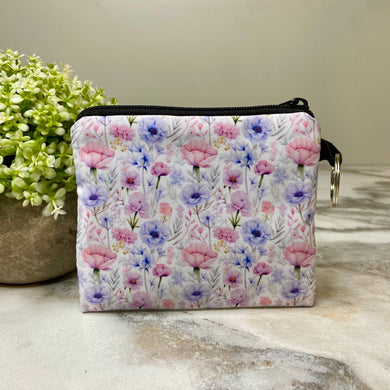 Mini Pouch - Floral Watercolor Outline Purple Blue