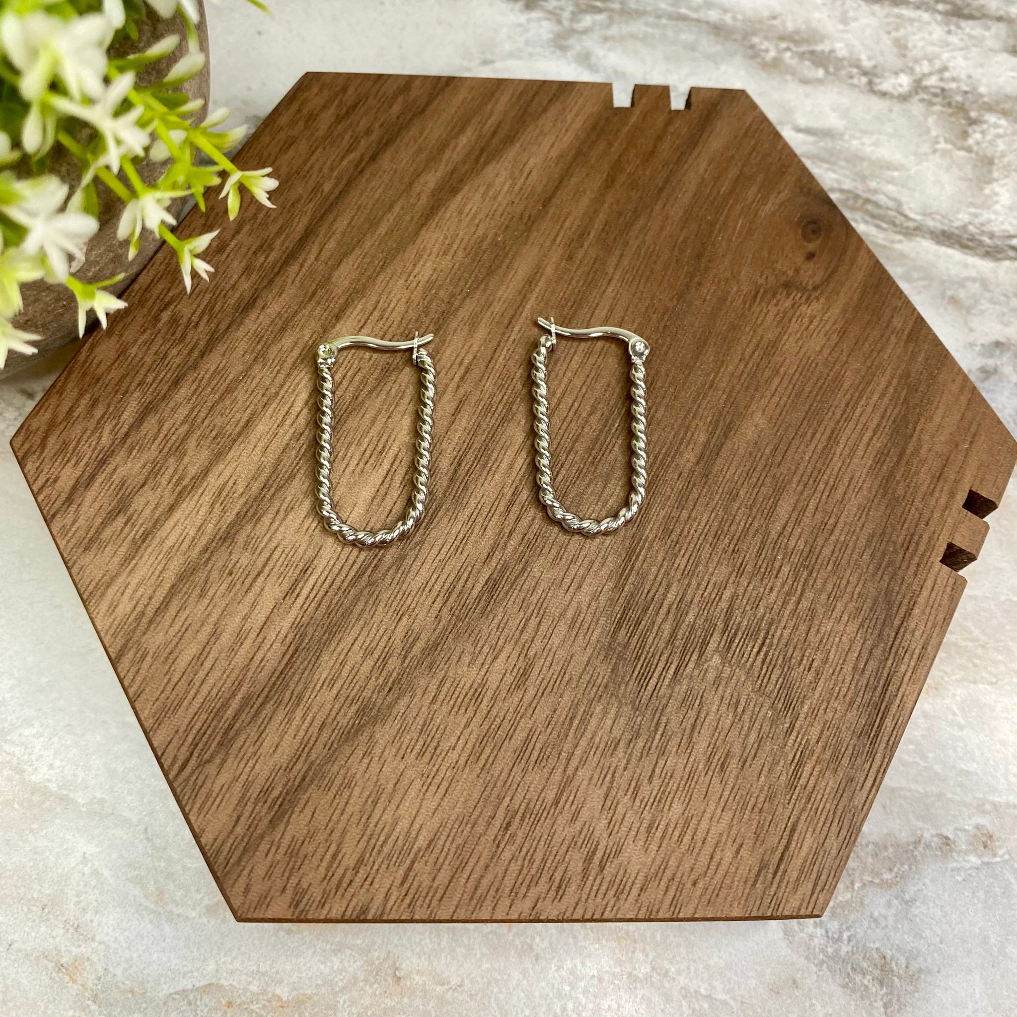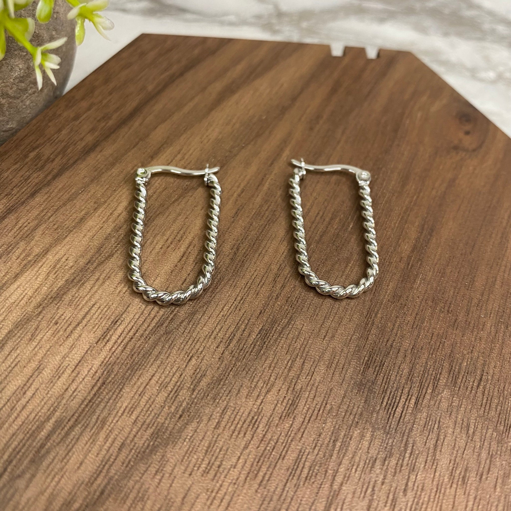Metal Dangle Earrings - Silver Oval Hoops