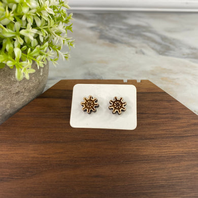 Wooden Stud Earrings - Ship Steering Wheel Helm