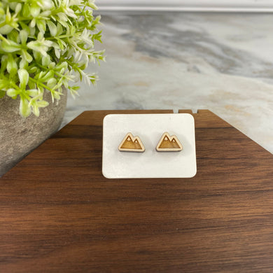 Wooden Stud Earrings - Mountain