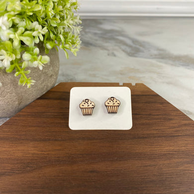 Wooden Stud Earrings - Cupcake