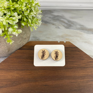 Wooden Stud Earrings - Plant Round