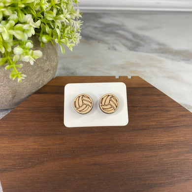 Wooden Stud Earrings - Volleyball