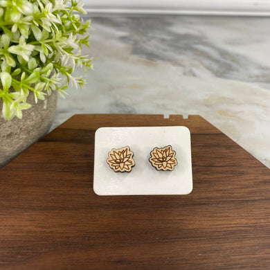 Wooden Stud Earrings - Succulent #1