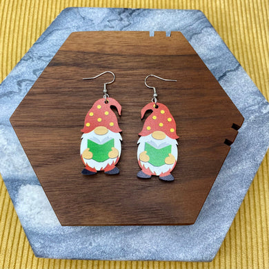 Wooden Dangle Earrings - Teacher Gnome ABC