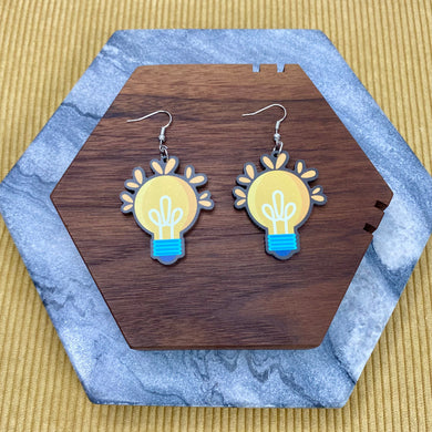 Wooden Dangle Earrings - Teacher - Light Bulb