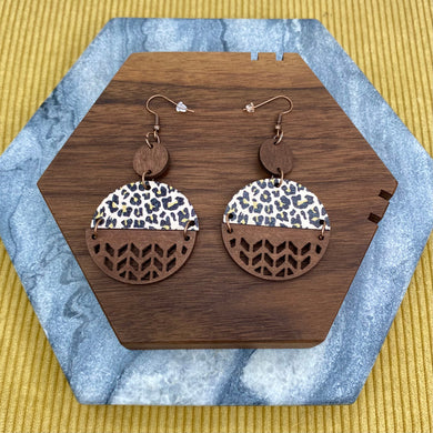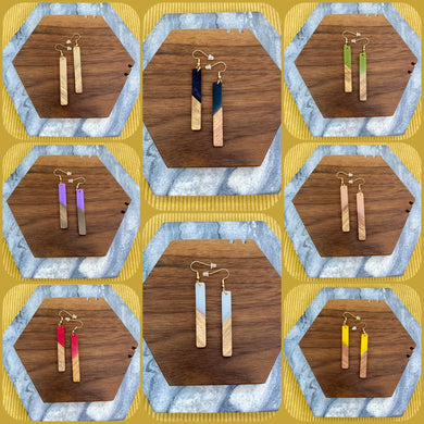 Wooden Dangle Earrings - Hexagon Bee Honeycomb