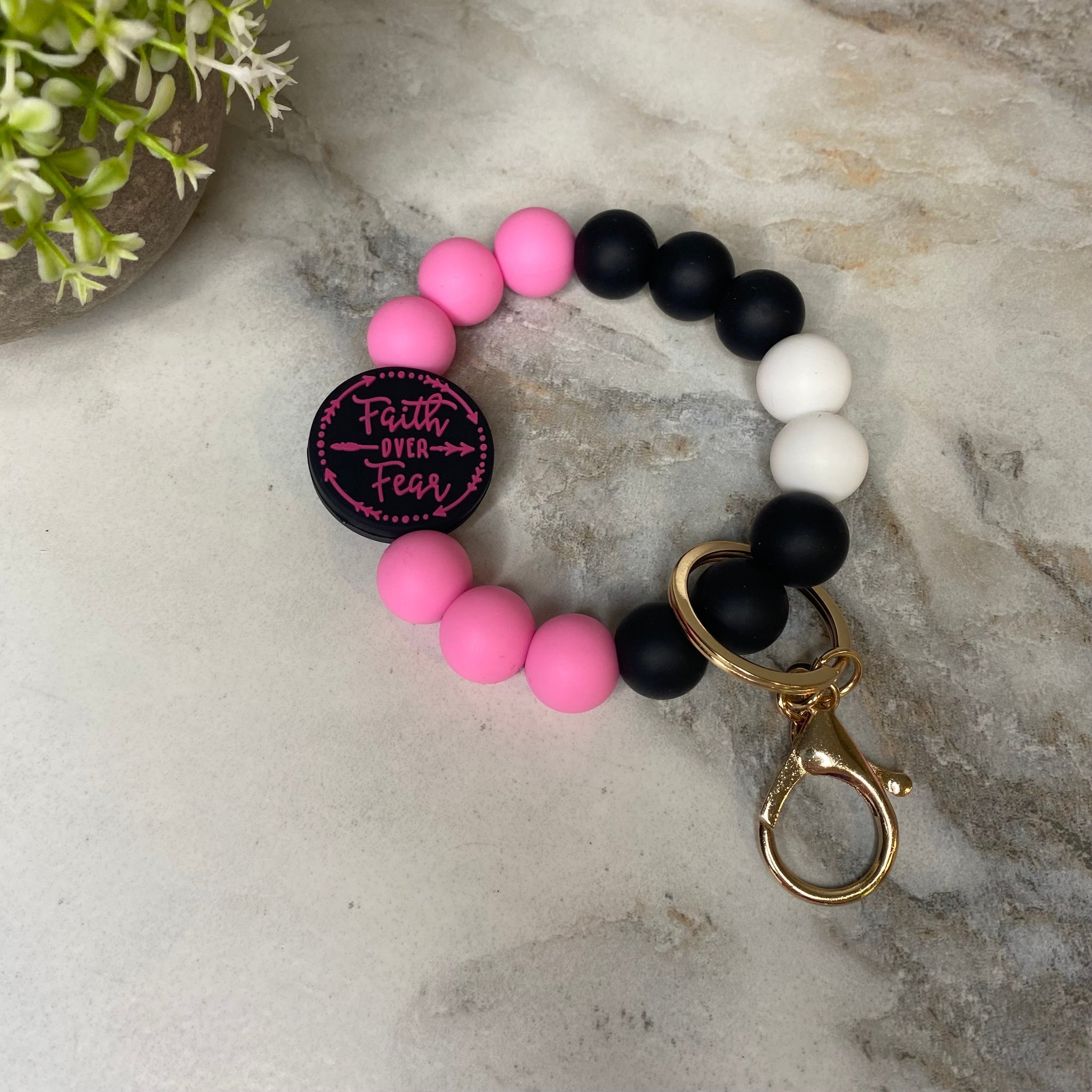 Silicone Bracelet Keychain - Faith Over Fear - Hot Pink