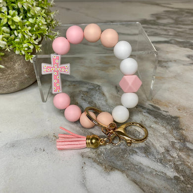 Silicone Bracelet Keychain - Cross - Hot Pink